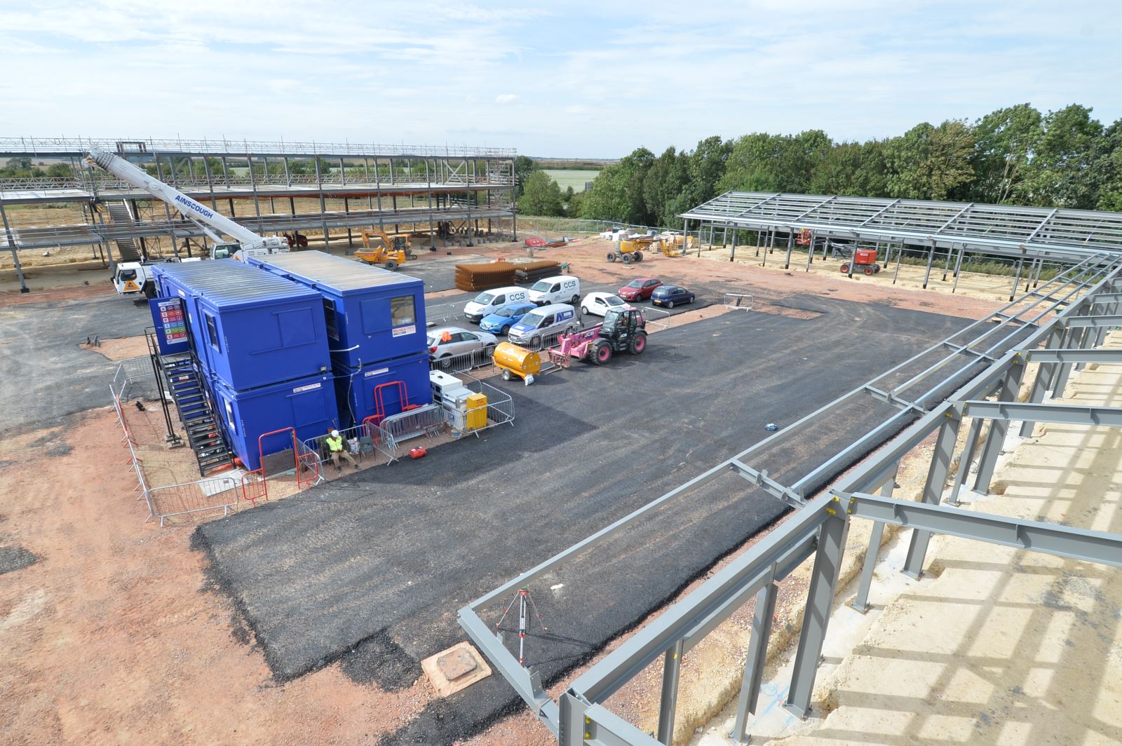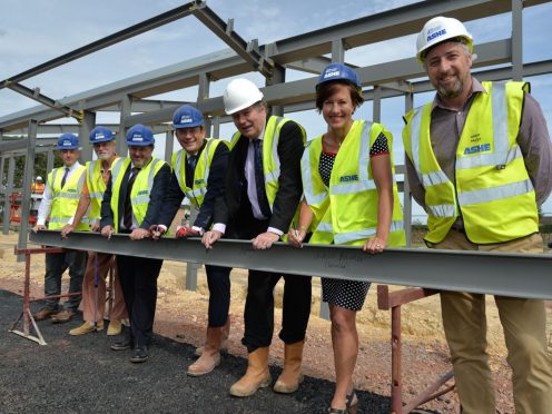To celebrate the completion of the steel frame of the ‘Enterprise Centre East Northants’ representatives from East Northamptonshire Council, South East Midlands Local Enterprise Partnership (SEMLEP) and ASHE construction signed the last steel section to be installed to commemorate the milestone.