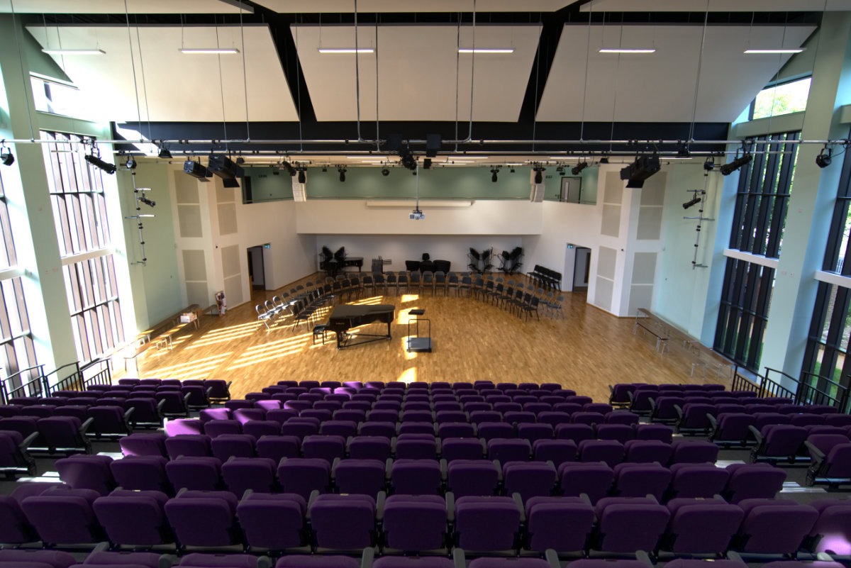 The project provided a 500-capacity concert hall with flexible seating and staging, a teaching wing with rehearsal rooms, practice rooms, IT suites and office space, and a new combined school entrance and foyer. Landscaping works delivered a new playground and parking, with a separate pupil entrance to improve safety and security. The scheme supported the school’s ambition to enhance music facilities and encourage greater community use.